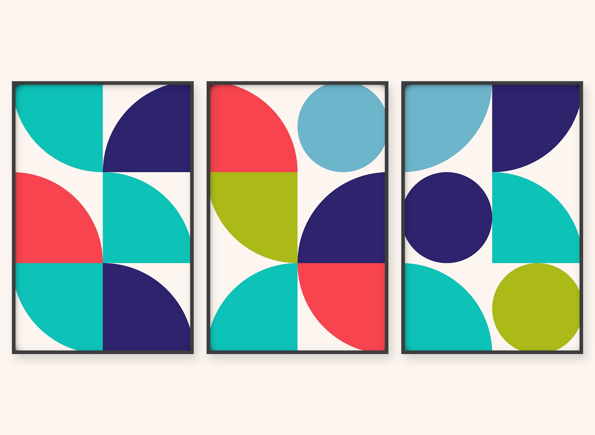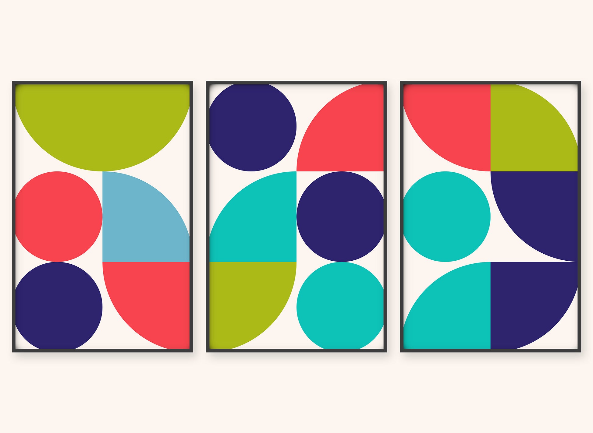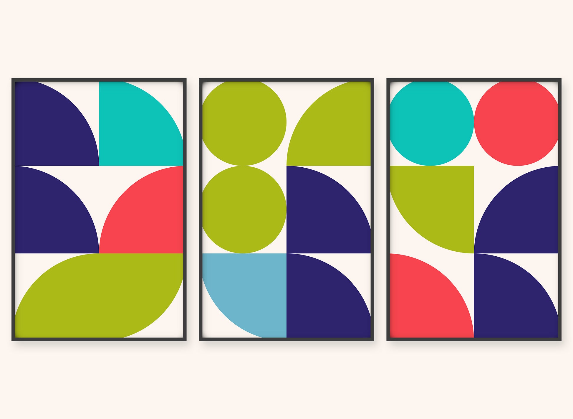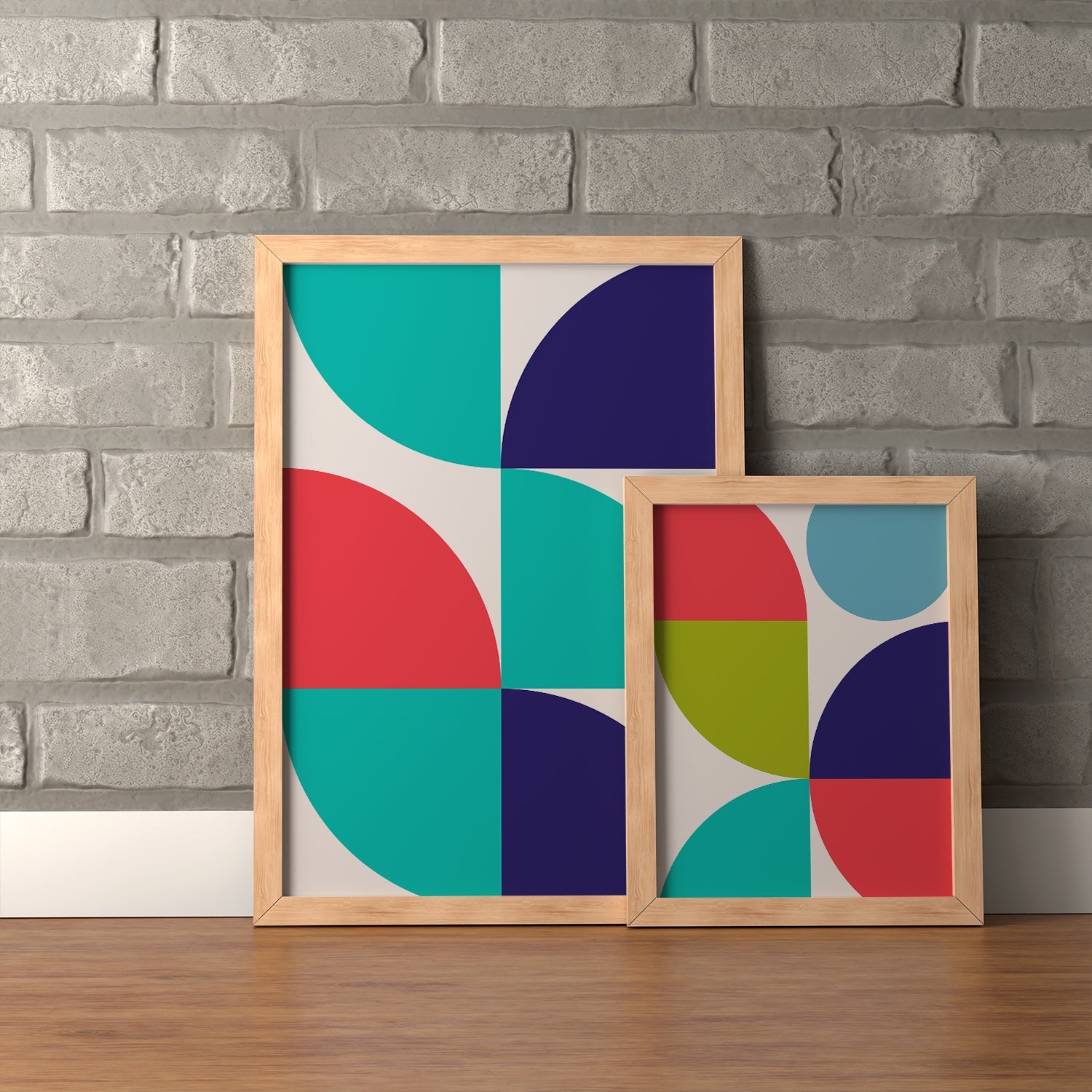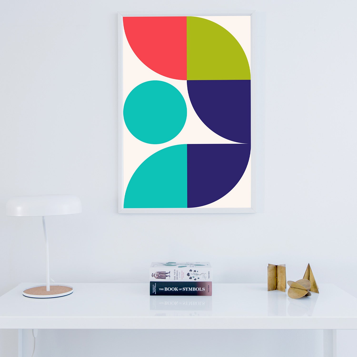 Graphical illustration inspired by the Bauhaus art movement, where architectural, austere, and geometric shapes are the basis. A vibrant choice of colors creates a beautiful depth that will give a room or a place in your home more life and color. Graphic art is an excellent choice if you want a more colorful home.